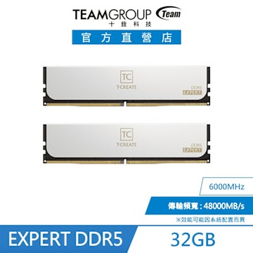 十銓 T-CREATE EXPERT-DDR5 6000 CL30【32GB(16GBx2)】桌上型記憶體(白)