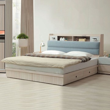 【藤原傢俬】白梧桐雙USB貓抓皮收納空間床組-單抽6尺雙人加大(雙USB貓抓床頭+收納空間床底+單抽屜)
