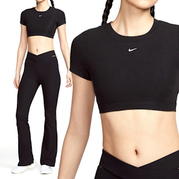 Nike NSW NK CHLL KNT MRIB SS T 女款 黑色 運動 短版 上衣 短袖 FN3665-010