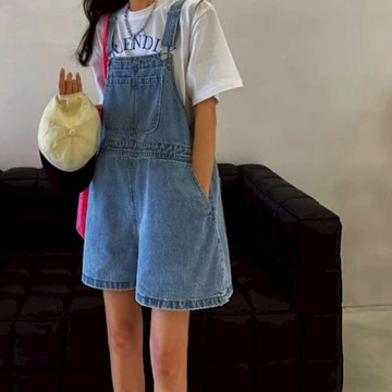 【巴黎精品】現貨+預購 吊帶褲丹寧短褲高腰牛仔短褲A字休閒褲大碼寬褲大尺碼女裝-寬鬆燈籠女褲子a1bg86