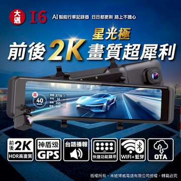【大邁】I6 前後2K 星光極 精準測速預警 電子後視鏡 (贈VIP到府安裝+64G記憶卡)