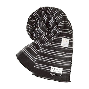 agnes b 優雅橫紋b.圖騰字母LOGO抗UV長領巾(黑底/長150CM)