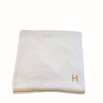 HERMES 愛馬仕家居品味首選LOGO雙面萬用毯100*140CM(米色/卡其棕)