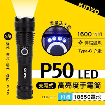 Kinyo 充電式P50高亮度手電筒 LED-665 1個