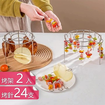 【荷生活】站立式穩固附鋼簽氣炸鍋烤肉架 提拿便利易洗耐生鏽烤箱烤肉架-烤架2入+24針組