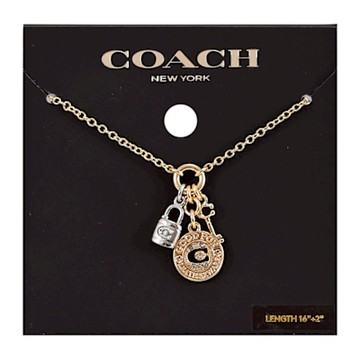 COACH 鎖釦圓牌造型吊墜鎖骨項鍊(金)