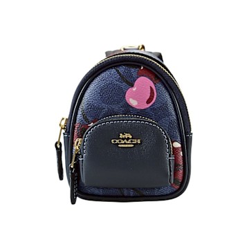 COACH 櫻桃印花丹寧藍C LOGO PVC MINI COURT後背包立體造型鑰匙圈掛飾
