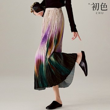 1S 三宅風百褶皺無袖背心裙女漸變色水墨扎染藝術看展禮服度假裙