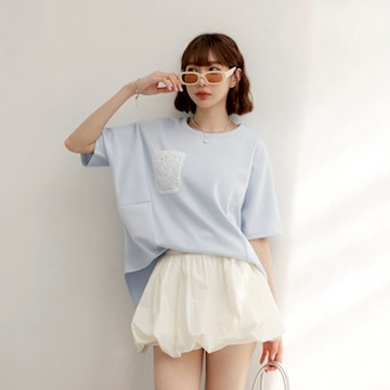 輕柔空氣棉蕾絲口袋寬鬆上衣