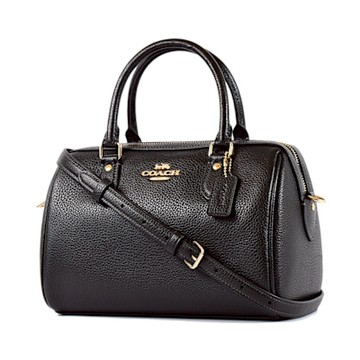 COACH 荔枝紋手提/斜背二用波士頓包-黑色