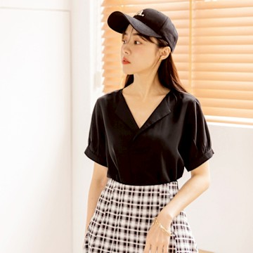 微透膚復古圓點反折短袖襯衫