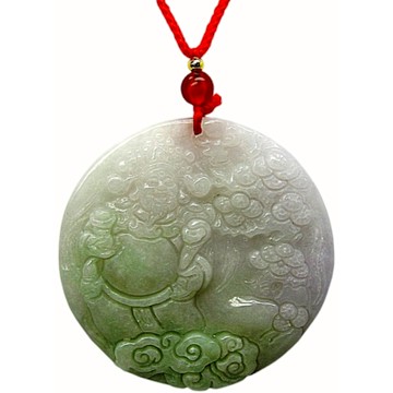 紫羅蘭灑綠花財運亨通關公 天然A貨翡翠玉石吊墜子項鍊H74