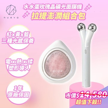 NUEVA AQUA 水水蛋玫瑰晶礦光面膜機 白/粉+NUEVA Volta 繃繃棒 6D 超微電溫感緊緻儀 白/黑