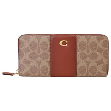 COACH CS031 經典C LOGO花紋款拉鍊長夾.駝/紅棕