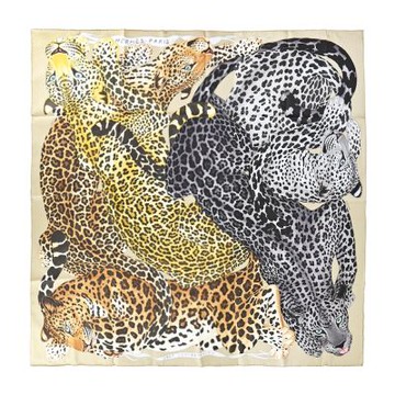 Hermes 愛馬仕 Lazy Leopardesses 90 慵懶豹真絲方巾(咖)