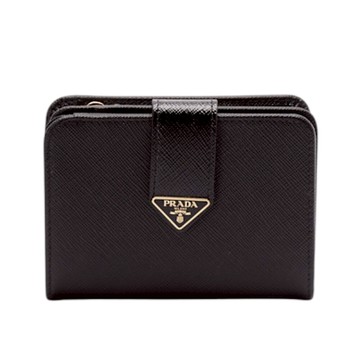 PRADA 普拉達 Saffiano 皮革 雙折 零錢包 皮夾 卡夾 短夾 黑色 1ML018