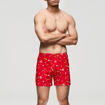 DADADO-一桿進洞 M-3L印花四角男內褲(紅) 天然絲光棉-吸濕排汗-GHQ517RS