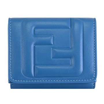FENDI 8M0395 FF LOGO立體壓紋NAPPA皮革三折零錢小短夾.藍