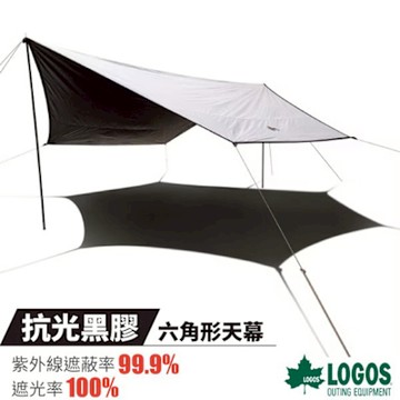 【LOGOS】抗光黑膠六角天幕.遮陽帳.炊事帳.遮陽棚.排風帳.帳蓬/適露營.登山.園遊會.活動展覽場/71809036