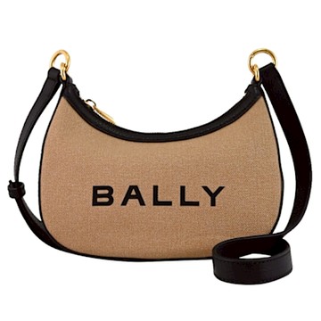 BALLY 6306493 BAR ELLIPSE 經典LOGO帆布款斜背彎月包.卡其/黑