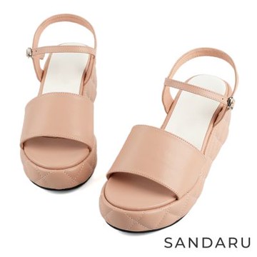 厚底鞋 BYHUE 簡約全真皮T字瑪莉珍軟芯微Q底厚底鞋-杏