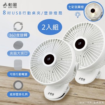 2入分享組 勳風 USB行動DC風扇/電風扇/夾扇/壁掛扇 HFB-S0007 / Type-C / 360度轉頭