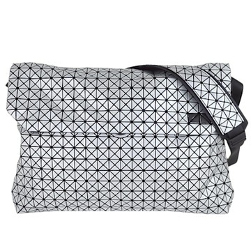 ISSEY MIYAKE 三宅一生 BAOBAO 銀色壓印方格翻蓋方型肩背/斜背包