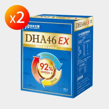 【信吉生醫】DHA46 EX rTG高濃度魚油膠囊60粒X2(Omega-3 92% EPA+DHA)