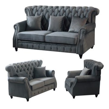 Polder Sofa 田園沙發組(海洋綠布料、淺色鈕扣、左扶手)