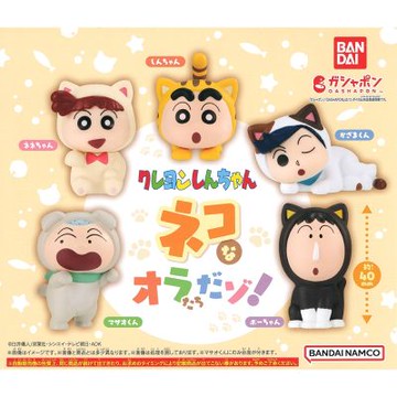 全套5款 日本正版 蠟筆小新 貓咪裝扮公仔 扭蛋 轉蛋 春日部防衛隊 野原新之助 風間徹 正男 BANDAI 萬代 - 808852