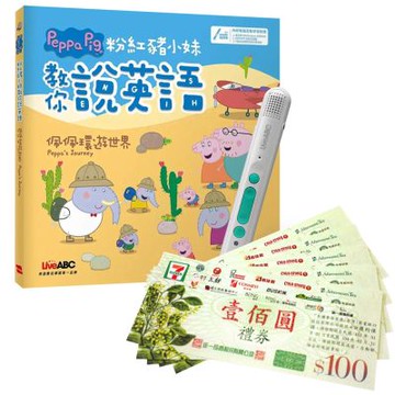 粉紅豬小妹教你說英語:佩佩環遊世界(精裝版)+ LiveABC智慧藍牙點讀筆16G + 7-11禮券500元