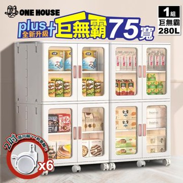 【ONE HOUSE】巨無霸 280L流川雙開門附輪摺疊收納櫃-75寬-2層(雙開隔4層 1入)