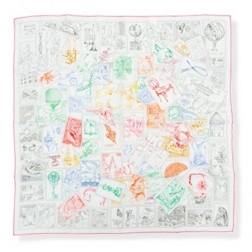 Hermes 愛馬仕 Jeu des Omnibus 140 cm手工捲邊斜紋真絲大方巾(白/紅/黃)