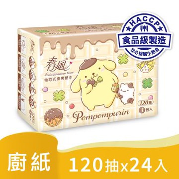 春風 布丁狗-抽取式廚房紙巾120抽x3包x8串/箱