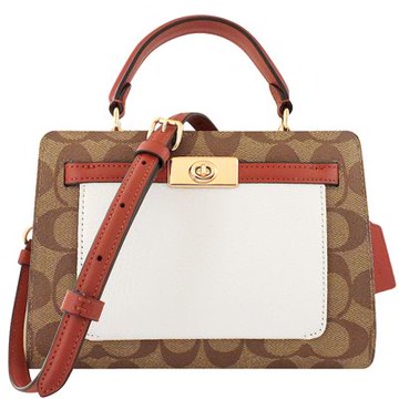 coach棕色老花拼接皮革手提包
