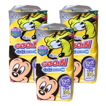【GOO.N 】境內版 拉拉褲/褲型尿布 迪士尼限定版 XXL號x3包 (34片x3包)