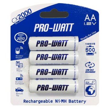 【華志PRO-WATT】CX2000 3號AA 4入 2000mAh 立即用 低自放電 鎳氫 充電電池(1.2V 重複充電500次)
