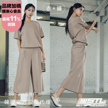 STL yoga 衣+褲 成套 韓國 女 FORTE WIDE PANTS 8 落肩寬鬆上衣+高腰前打摺直筒 8分 寬褲/SugarRusk煙糖棕