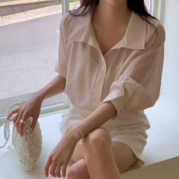 微透細條紋理寬鬆長版襯衫