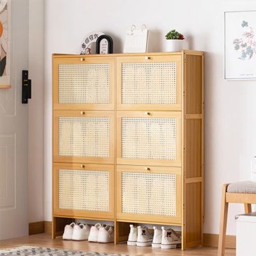 HappyLife 實木籐編超薄翻斗鞋櫃 63×24×120cm Y11312