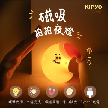 【KINYO】磁吸拍拍夜燈 彎月 (SL-3010)