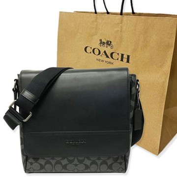 COACH 經典C LOGO男款掀蓋斜背包附紙袋(黑灰)
