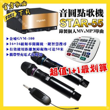 音圓 超值一起購最划算STAR-55點歌機+金嗓GVM-100 攜帶式無線麥克風