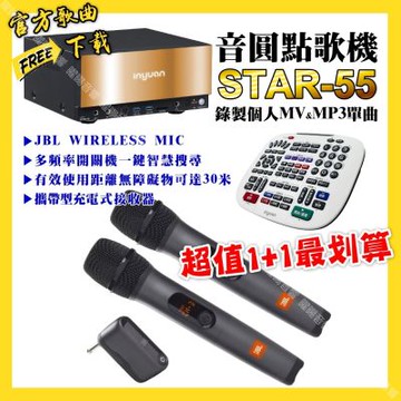 音圓 超值一起購最划算STAR-55點歌機+JBL UHF攜帶式無線麥克風