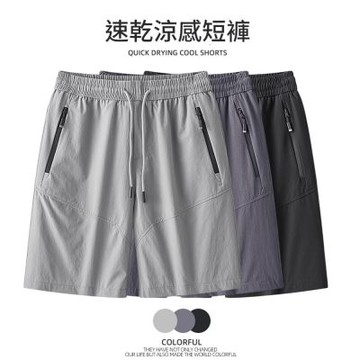 男短褲 冰絲涼感MOUNTAINS反光 拉鏈口袋休閒運動褲 現+預【NW613006】