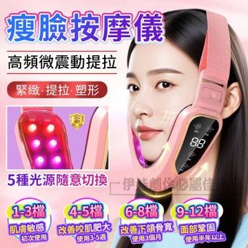 智能紅藍光電動臉部按摩儀 提拉緊緻瘦臉V臉繃帶(穴位按摩 美容儀 導入儀 V臉儀)