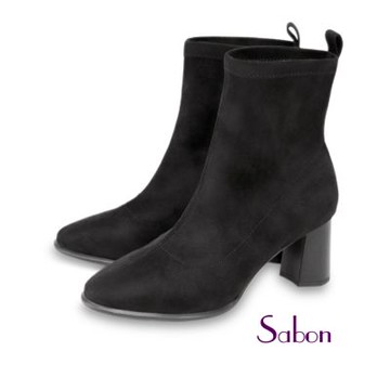 GREENPINE冬日輕奢粗跟短筒彈力襪靴黑色(10118573)