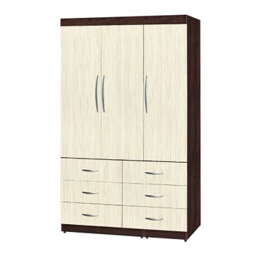 文創集-南亞塑鋼 安格 南亞塑鋼4尺三開門六抽衣櫃/收納櫃-121.2x60.4x200cm免組