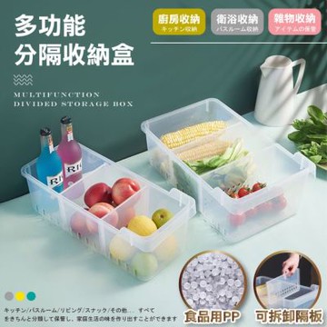 大空間冰箱分隔收納盒 可拆隔板設計,自由調整置物空間 透明盒體,一目了然 底部鏤空設計 一體成形,結實耐用