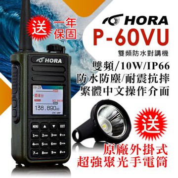 「免運好禮」+「雙重加購優惠價」HORA P-60VU 雙頻雙待機 10W IP66 防水防塵 計頻器對頻 無線電對講機